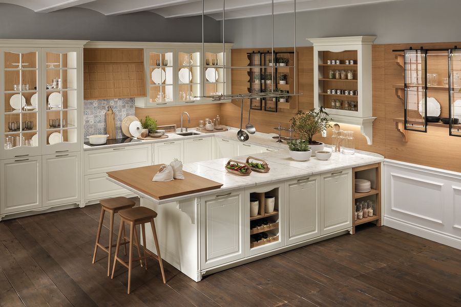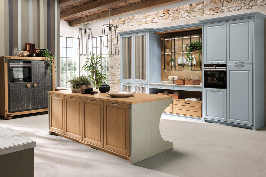 Кухни PORTRAIT Aster Cucine понравится людям, которым нравится всё иметь под рукой. Множество вариантов тумб, выдвижные и открытые полки, буфеты, шкафчики и напольные шкафы. В производстве кухни Portrait используется натуральное дерево, МДФ, стекло, натуральный камнень. Имеется широкий выбор цветовых вариантов ртделки.